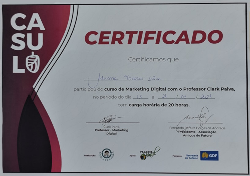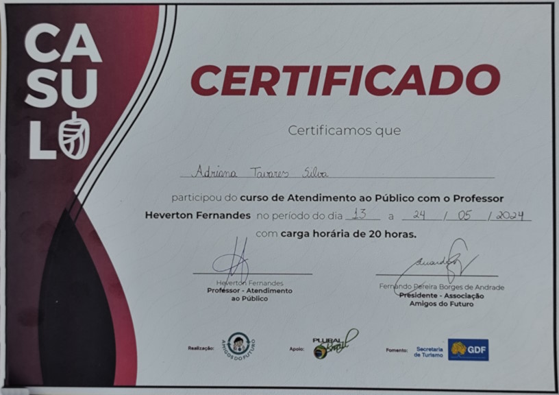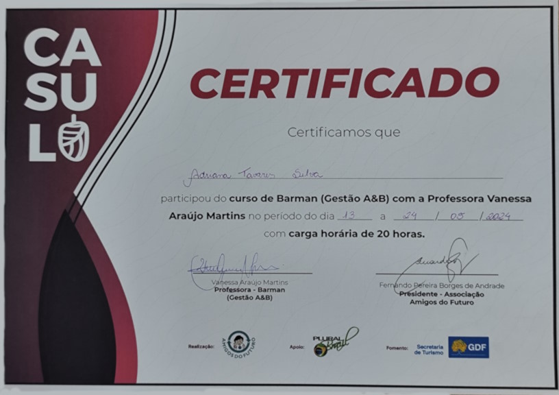 Com formação técnica no IFB – Instituto Federal de Brasília, no curso “Técnico em Eventos”. Curso técnico profissionalizante de nível médio.